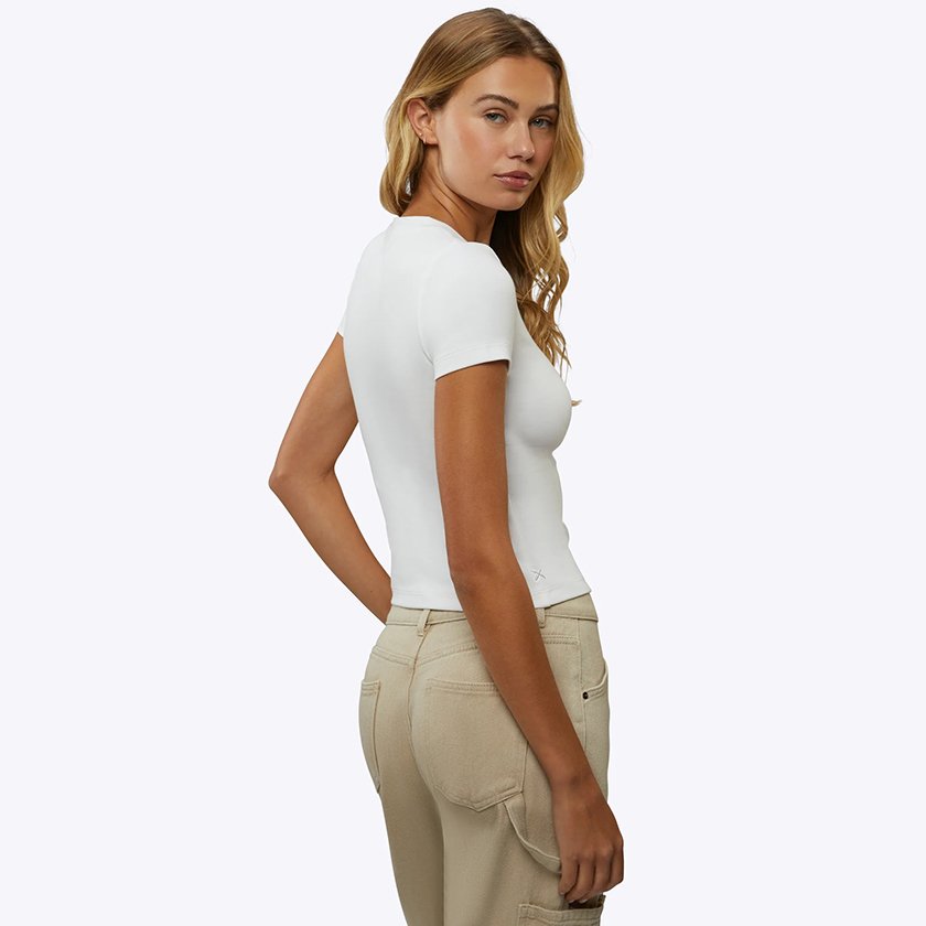 Cool and confident. For the days you need to be effortlessly polished. A slim fit tee that perfectly pairs with your favorite trouser or straight denim. Style it up with jewelry and a strappy heel or keep it casual with a chunky sneaker.